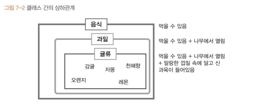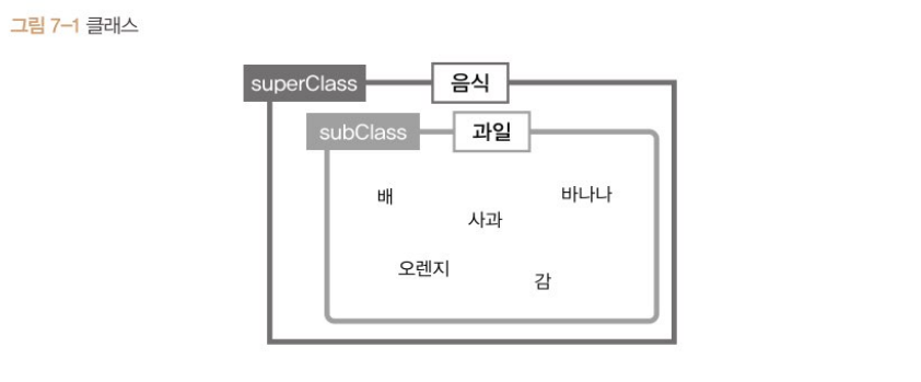 음식은 과일보다 상위 클래스(superclass), 과일은 음식보다 하위 클래스(subclass)이다.